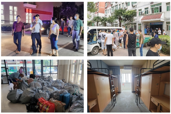 搬迁工作在8月30日下午和9月1日下午,9月2日全天三个时段分批次进行。过程中,学院领导、辅导员、班主任、学工部相关人员以及学生志愿者等按照搬迁方案积极组织,有序搬迁。学工部安排搬运专用电瓶车帮助学生搬运行李,学院组织专人对行李集中存放点、学生宿舍等人员集中地开展卫生检查及消杀工作,各班班主任、辅导员老师亲自到场,指导搬迁,同学们男女分工,相互帮助,四大院志愿者突击队员们在宿舍服务点奔忙搬运,搬迁结束后,所有同学将原宿舍全部收拾干净,给新同学留下整洁如初的住宿环境,充分展现了的长大学子的良好素质和青春风采。