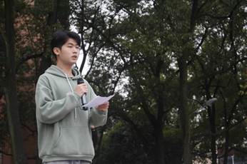升旗过后,学生代表来文豪作国旗下讲话。首先,他代表全体同学向运动员获得的优异成绩表示祝贺,随后借助于运动会的一些事情来告诉同学们坚守公平正义对的重要性,作为长大学子有责任有义务去捍卫公平,维护正义,坚守党的最高理想,做到心之所想,便是党心所向。