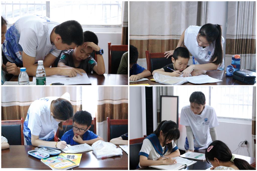 “ 哥哥,这道题怎么做,可以教我一下么?”“我们喜欢音乐,你为我们唱一首歌好不好?”……上午,队员们给孩子们辅导暑期作业,充当“家长”,认真查看孩子的作业情况,并针对他们在写作业时所遇到的问题进行耐心地讲解指导。在音乐课上,积极地与孩子们互动,带着大家一起歌唱《我的祖国》,通过亲切的话语,有趣的游戏,逐步打开留守儿童的心扉,并通过鼓励、安抚等帮助孩子们树立积极、乐观、向上的心态,鼓励孩子们遇到困难不气馁、不自卑,多方位思考并努力进步才是解决问题的好方法。