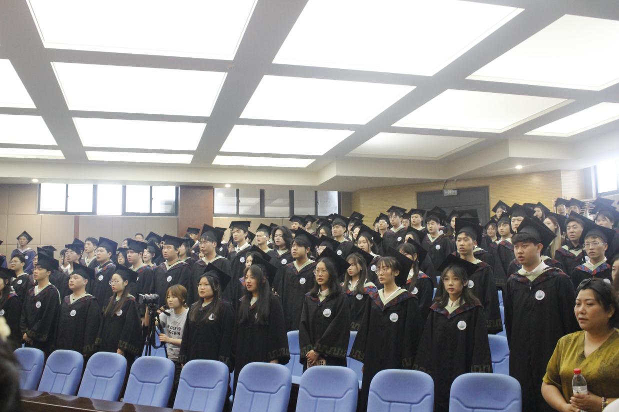 在一阵热烈的掌声中,江万哲老师、高学军老师、杨烨老师、周玉老师、袁汉文老师庄重地为毕业生代表授予学位证书。轻柔的流苏被缓缓拨至学士帽的左侧,毕业生们郑重地从校领导的手中接过卷轴,意味着他们在长大校园的青春生活也正式落下帷幕,新的人生大门被轻轻叩响。
